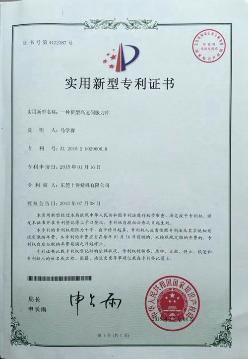 經交付用戶實驗使用證明,不僅可廣泛應用于高速數控加工中心所有領域,同時生產效率向前邁出了一大步。當專家組在上善精機公司驗收國家重大專項“新型高速伺服刀庫”課題結束后,中國科學界的諸多教授和學者專家感慨地說。這項專利投放到市場之后,將會出現供不應求的銷售局面,因為所有的中小機床都適用。這些專利成果為公司今后的發展積蓄了前進的動力,進一步提升了公司產品科技含量,增強了產品穩定性,提高企業核心競爭力,為公司的再發展提供了強有力的科技支撐。